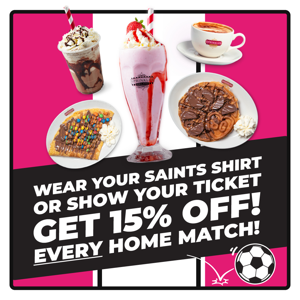 A 15% Discount - Just wear your Saints shirt or show your match day ticket.