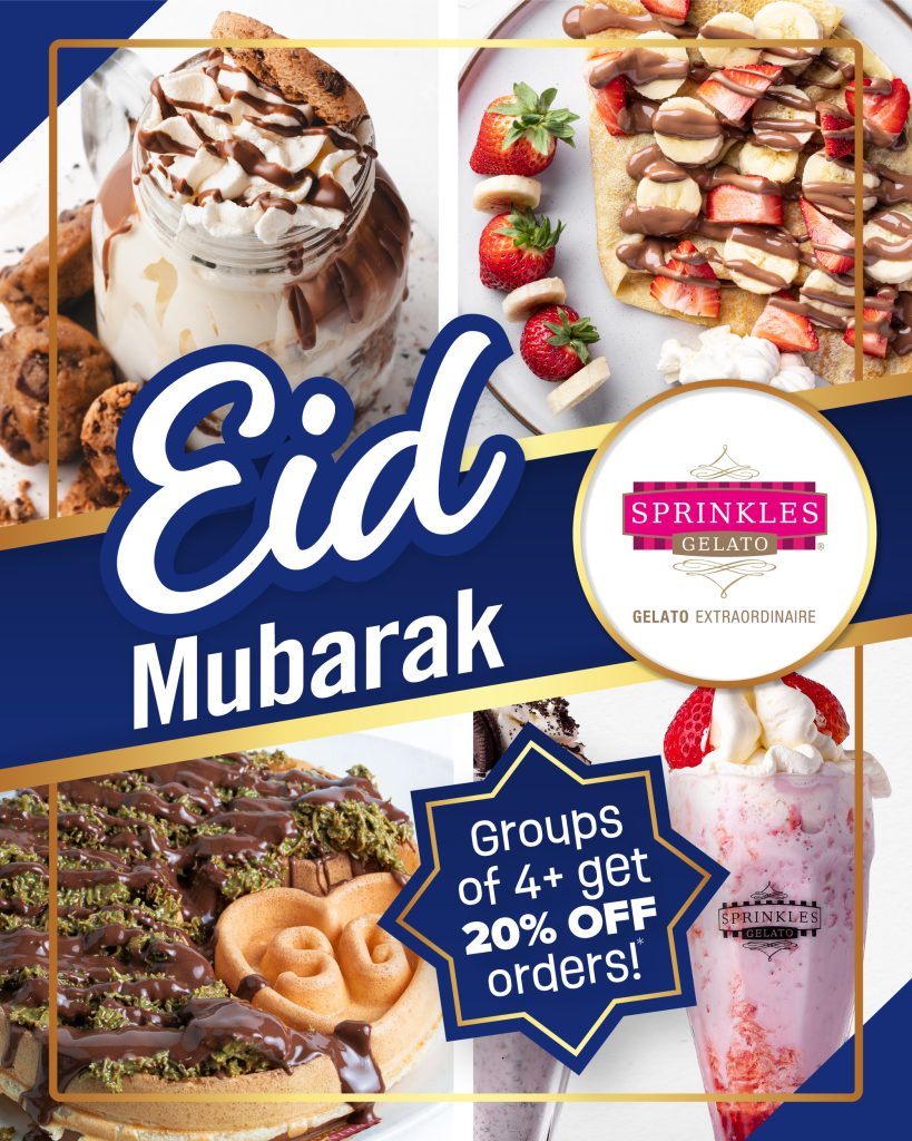 From all of us at Sprinkles Gelato, we wish you and your loved ones a blessed and joyous Eid filled with peace and, most importantly, plenty of dessert!